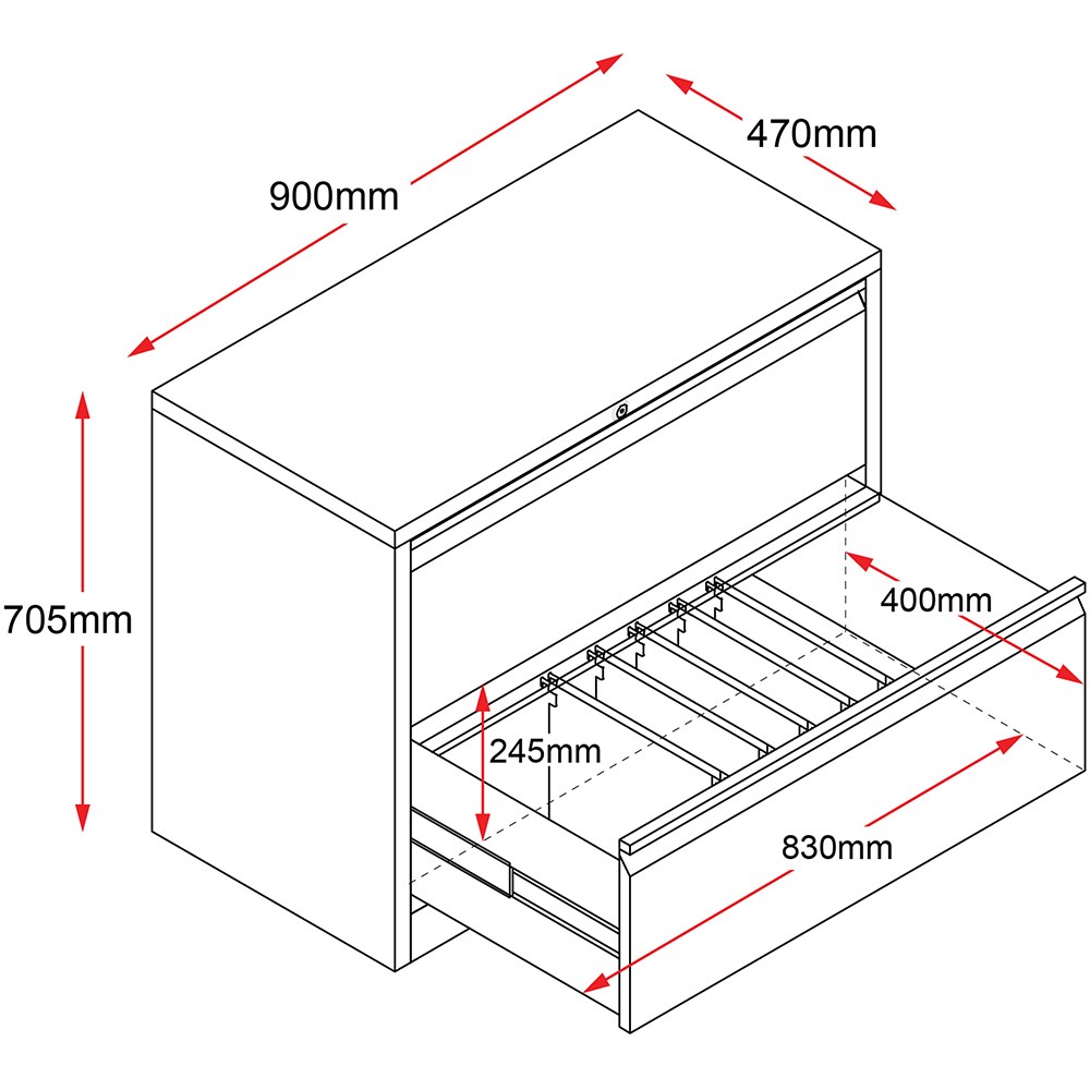 Rapidline GO Lateral Filing Cabinet 2 Drawer 705Hx900Wx473mmD Black