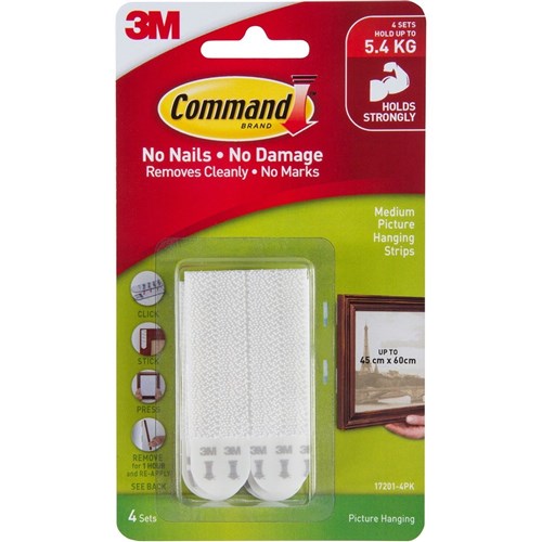 COMMAND PICTURE HANGING STRIPS Large White 17206 4 Pairs Per Pack