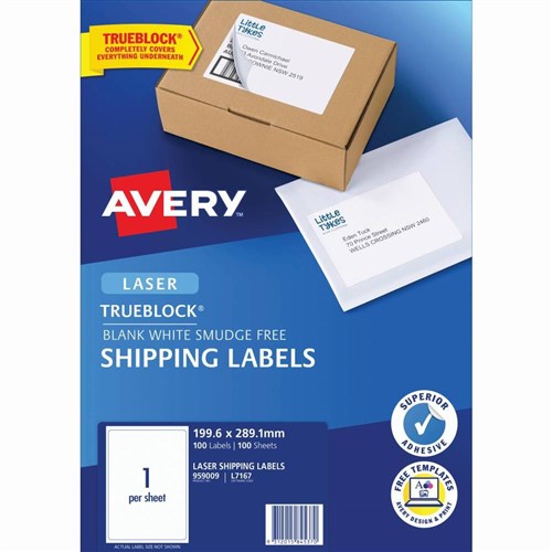 AVERY INTERNET SHIPPING LABELS L7167 1L/P/Sht 199.6x289.1mm Pack of 10 Laser Labels