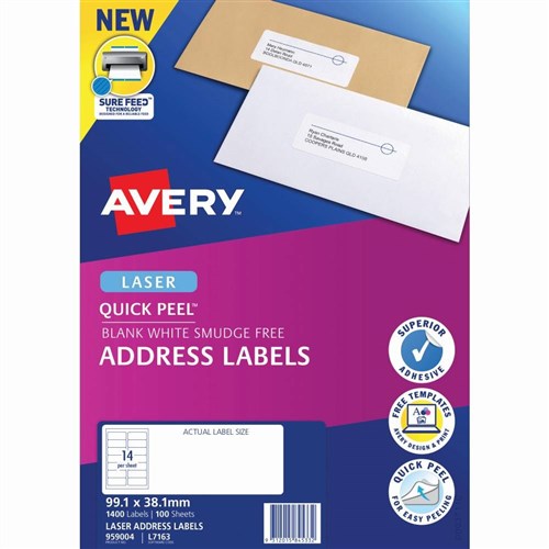 AVERY SURE FEED LABELS Laser 99.1 x 38.1mm White Pack of 140