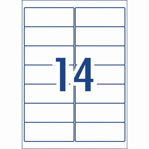 Size: 99.1x38.1mm 1400 labels, 100 sheets. 14 labels per sheet (14UP).