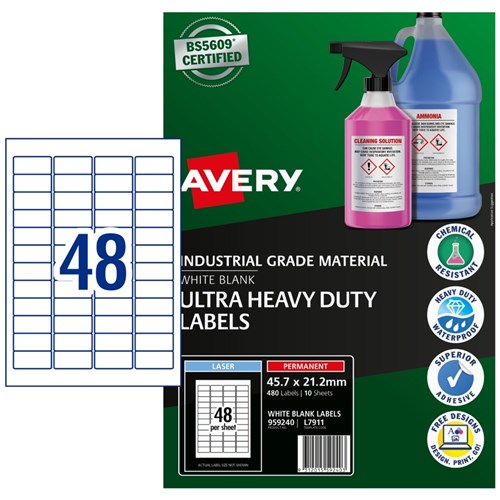 Avery 959240 Ultra Heavy Duty Industrial Labels White L7911