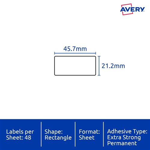 Size: 45.7x21.2mm 480 labels, 10 sheets. 48 labels per sheet (48UP).