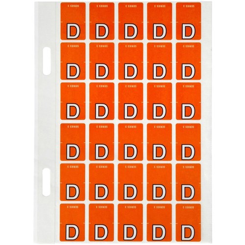 Avery Alphabet Coding Label D Top Tab 20x30mm D Orange Pack of 150