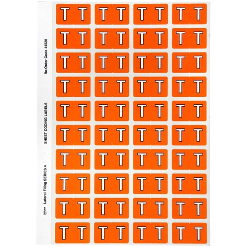 AVERY ALPHABET CODING LABEL T Side Tab 25x42mm Orange