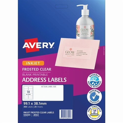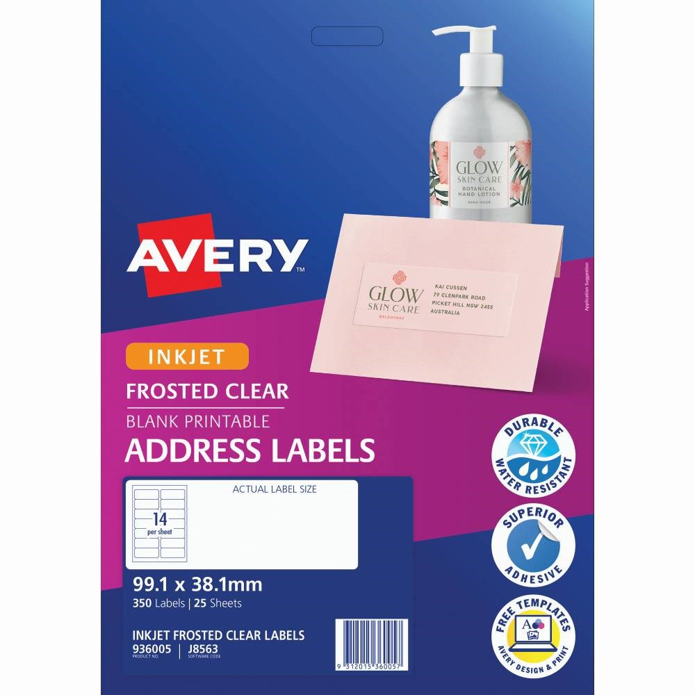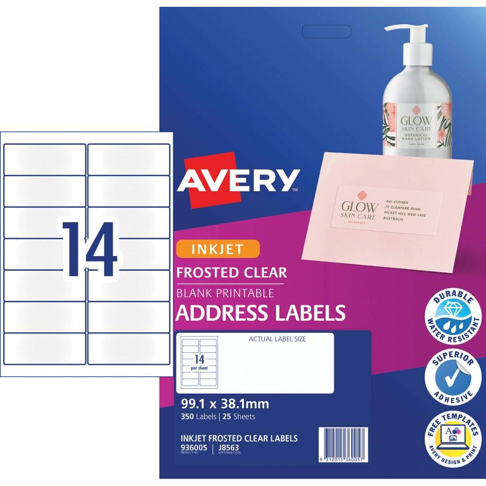 Avery Inkjet Frosted Clear Label 14UP 99.1x38.1mm 350 Labels, 25 Sheets