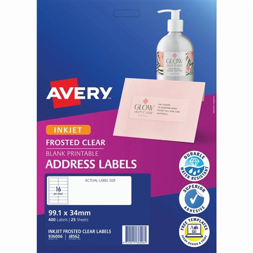 AVERY CLEAR MATT FINISH J8562 16 INJET LABEL PKT 25