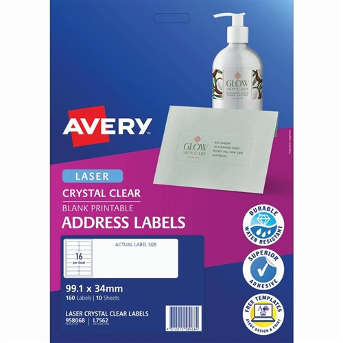 Avery Crystal Clear L7567-10 Address Label 16UP 99.1x34mm 160 Labels 10 Sheets DISCONTIN