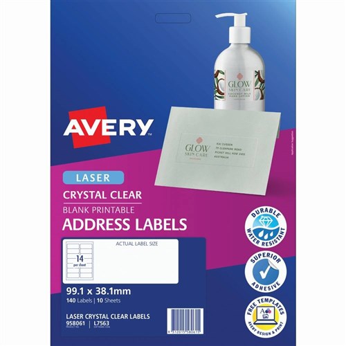 Avery Crystal Clear Laser Address Label 14UP 99.1x38.1mm 140 Labels 10 Sheets