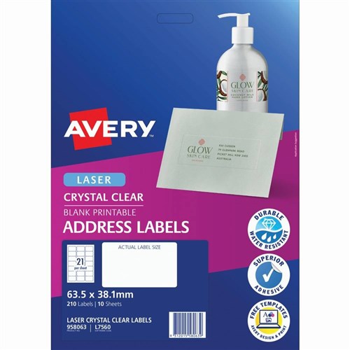 Avery Crystal Clear Laser Address Label 21UP 63.5x38.1mm 525 Labels 10 Sheets