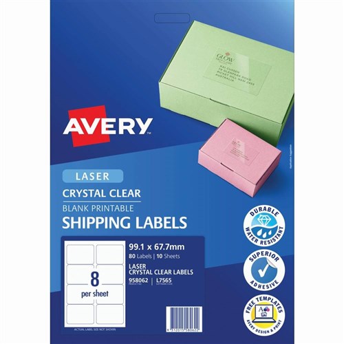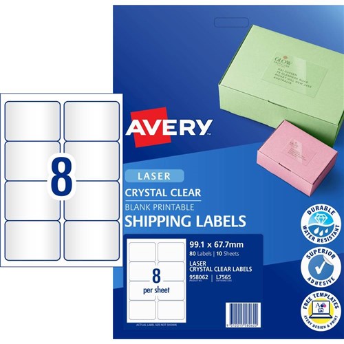 Avery Crystal Clear Laser Address Label 8UP 99.1x67.7mm 80 LABELS 10 SHEETS