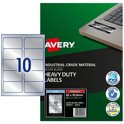 AVERY DURABLE HEAVY DUTY LABEL L6012 SILVER PKT 20 10 LABELS PER SHEET