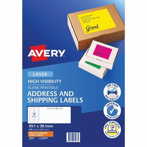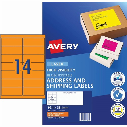 AVERY FLURO ORANGE LABELS L7162FO 16 UP PACK OF 25