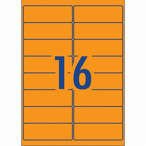 AVERY FLURO ORANGE LABELS L7162FO 16 UP PACK OF 25