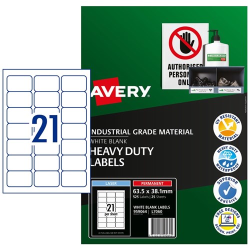 AVERY HEAVY DUTY LASER LABELS L7060 21 L/P/Sheet 959064 PK25