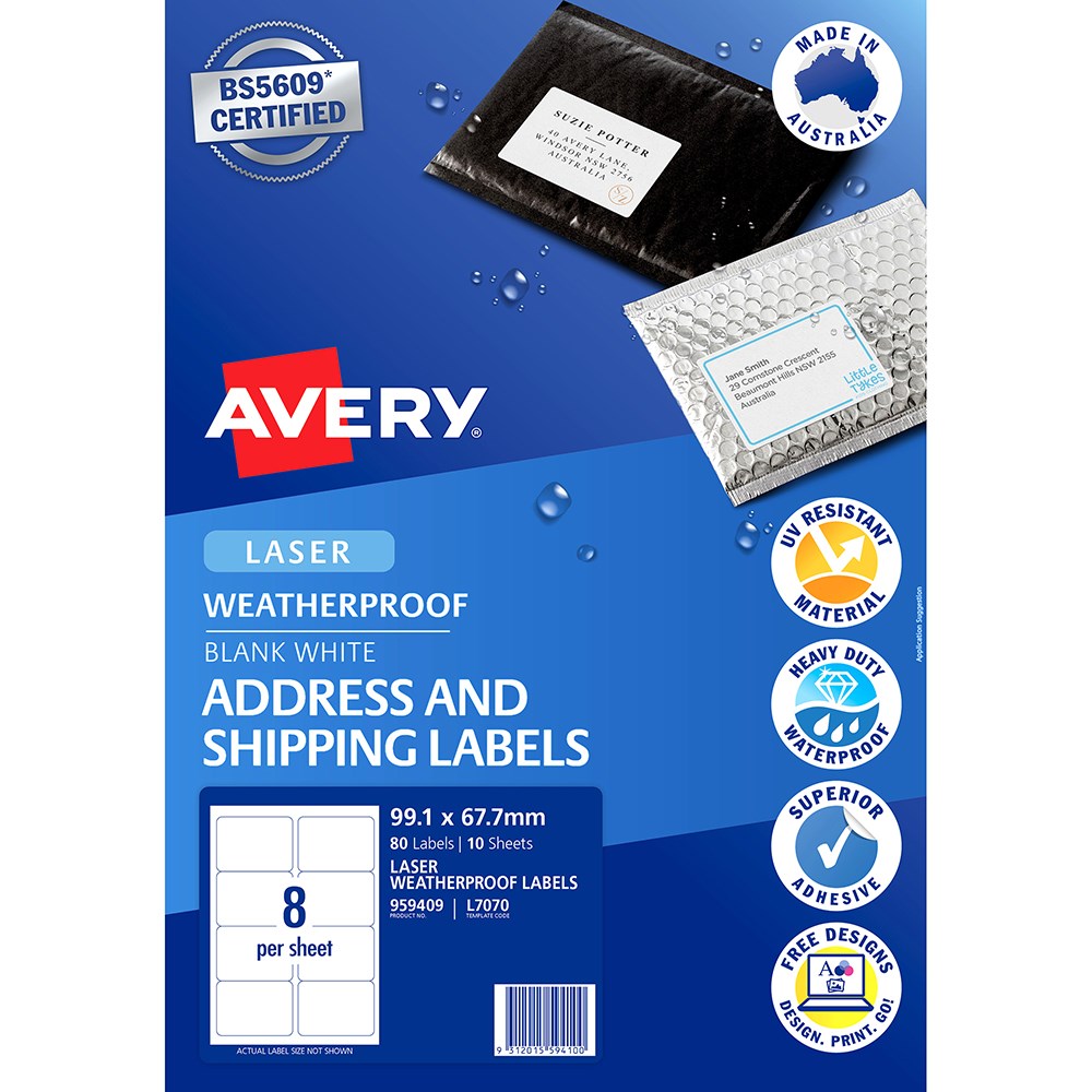 Customise your labels with Avery Design and Print, available at averyproducts.com.au/print.