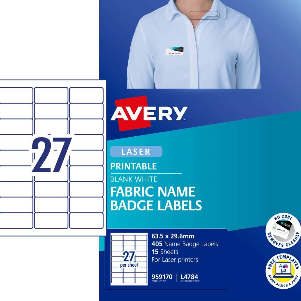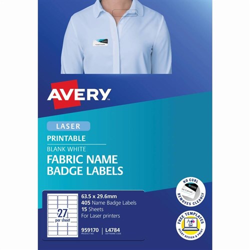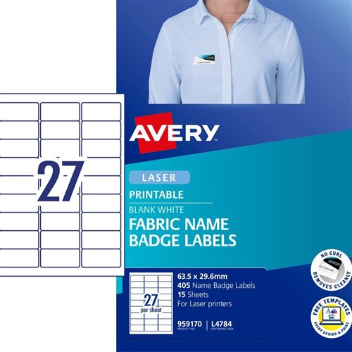AveryFabricNameBadgeLabels Laser L7427 88x52mm 10UP 150 Labels PACK OF 15