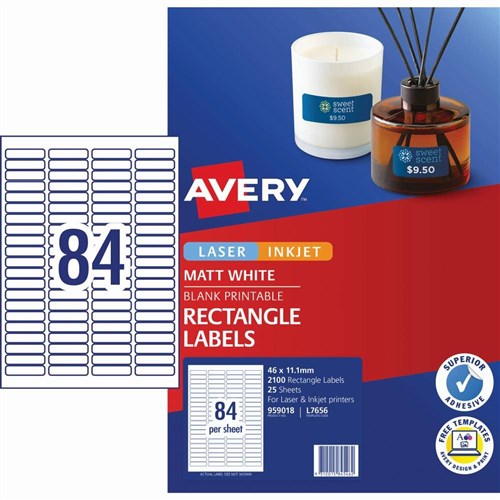 AVERY LASER LABEL L7656 PACK 25 84 PER PAGE 959018 46x11MM