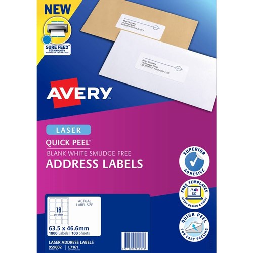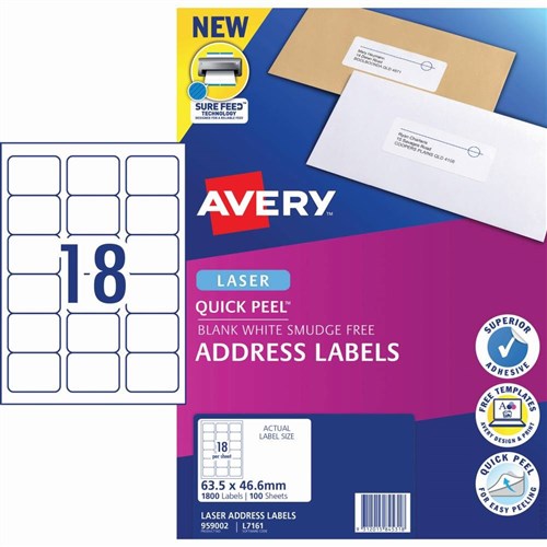 AVERY LASER LABELS L7161 BOX 100 18 PER SHEET 959002