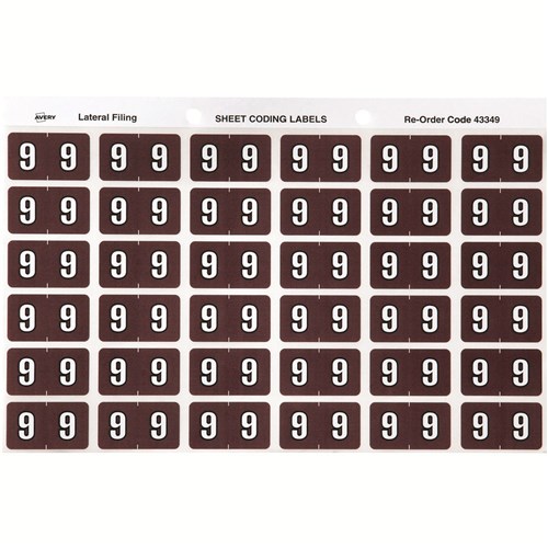 AVERY LATERAL FILING LABEL "9" SIDE TAB SHEETS PKT 180 BROWN