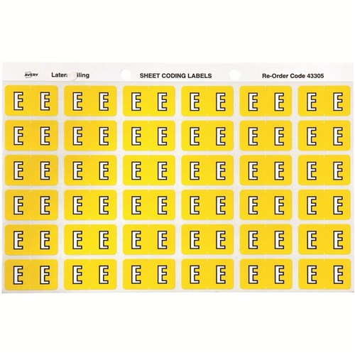 AVERY LATERAL FILING LABEL "E" SIDE TAB SHEETS PKT 180 YELLOW