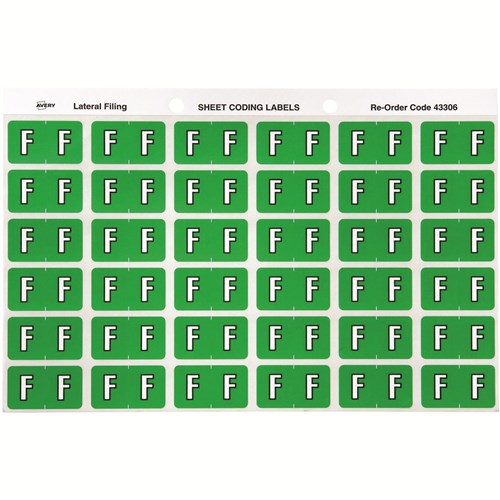 AVERY LATERAL FILING LABEL "F" SIDE TAB SHEETS PKT 180 LIGHT GREEN
