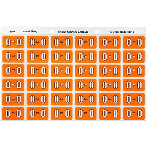 AVERY LATERAL FILING LABEL "O" SIDE TAB SHEETS PKT 180 ORANGE