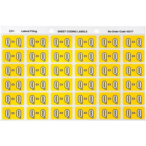 AVERY LATERAL FILING LABEL "Q" SIDE TAB SHEETS PKT 180 YELLOW