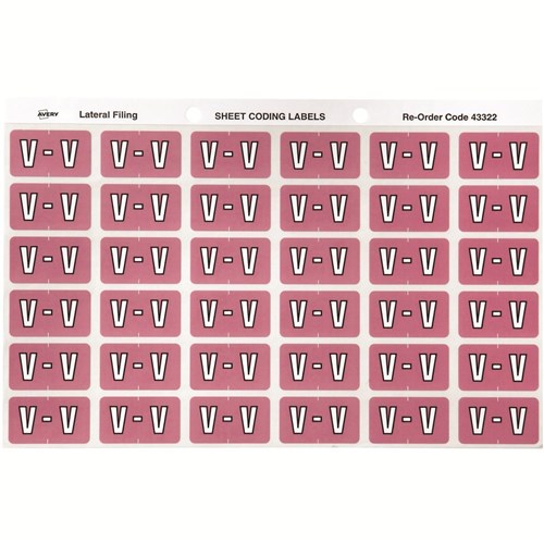 AVERY LATERAL FILING LABEL "V" SIDE TAB SHEETS PKT 180 MAUVE
