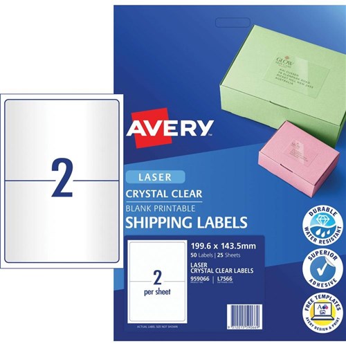 AVERY MAILING LASER LABELS L7168 2 L/P Sht 199.1x143.5mm Shipping - Crystal Clear Bx50