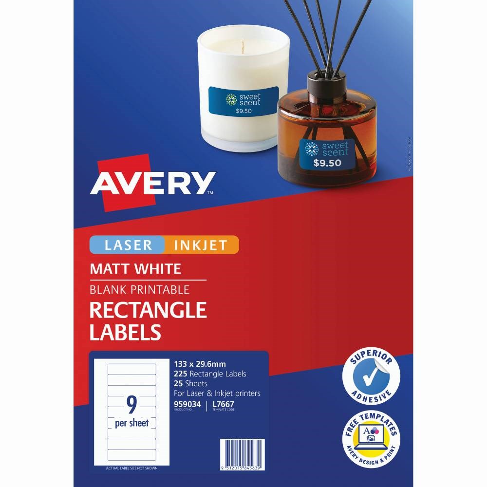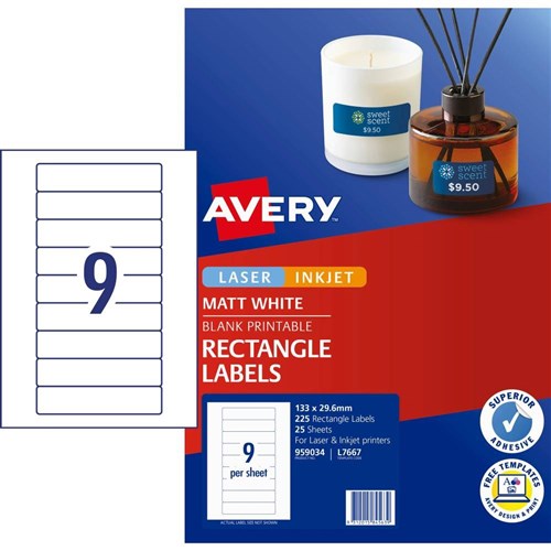 Size: 133x29.61mm 225 labels, 25 sheets. 9 labels per sheet (9UP).