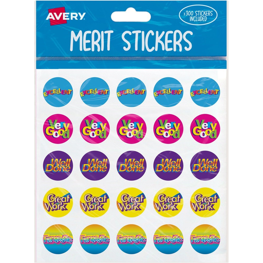 Avery Merit Stickers 300 Labels Caption 1 Assorted