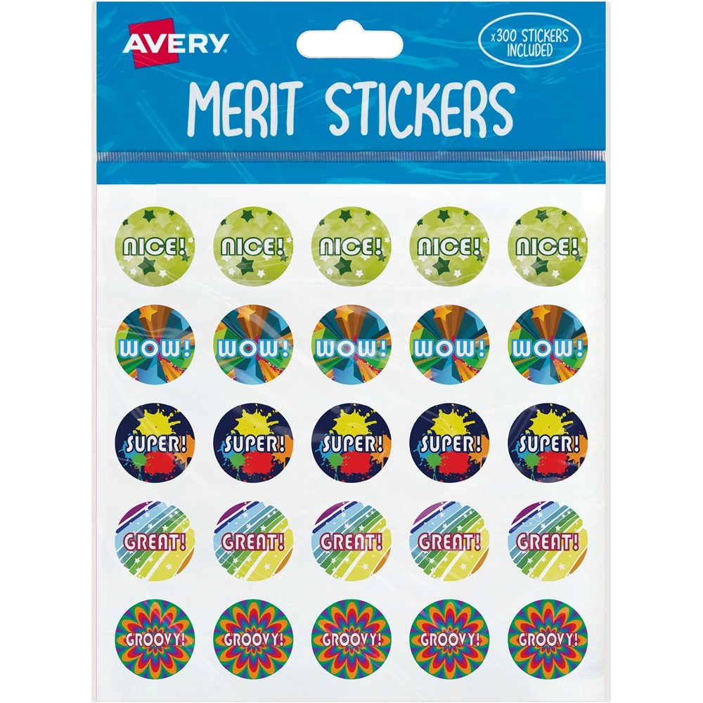Avery Merit Stickers 300 Labels Caption 1 Assorted