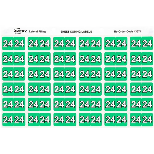 Avery Side Tab 24 Year Code Labels 25x38mm Green Box of 500