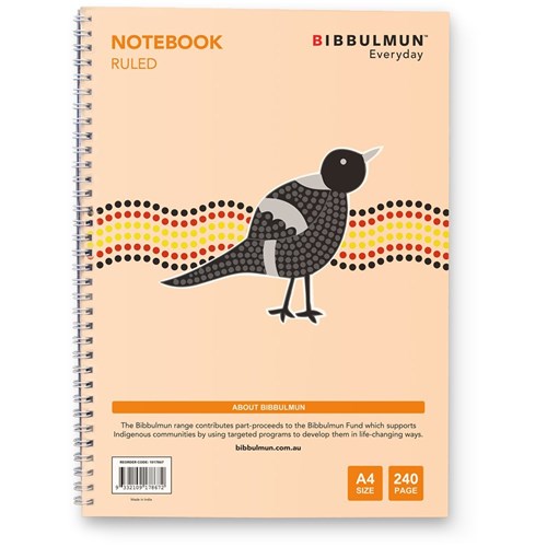 BIBBULMUN NOTEBOOK A4 240 PAGE SPIRAL SIDE BOUND 7MM RULED CVC