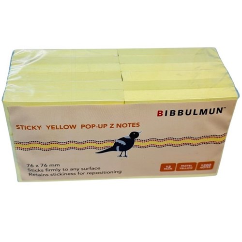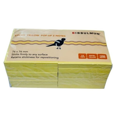 Bibbulmun Pop Up Z Notes Sticky Notes 76 x 76mm Yellow Pack Of 12