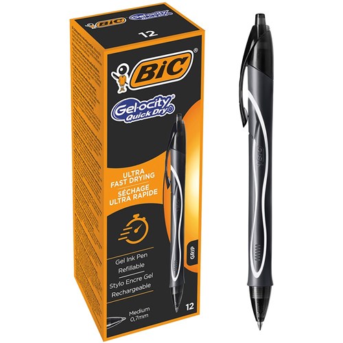BIC GELOCITY GEL PEN BLACK Retractable 0.7mm Medium Black Pack of 12
