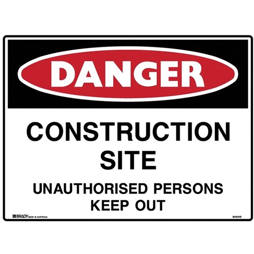 BRADY DANGER SIGN Construction Site Polypropylene