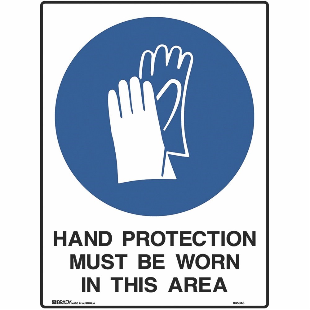 BRADY MANDATORY SIGN Hand Protection 450x600mm Metal