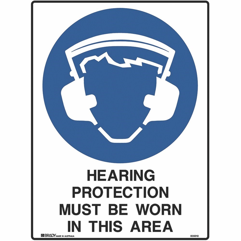 BRADY MANDATORY SIGN Hearing Protection 450x600mm Metal