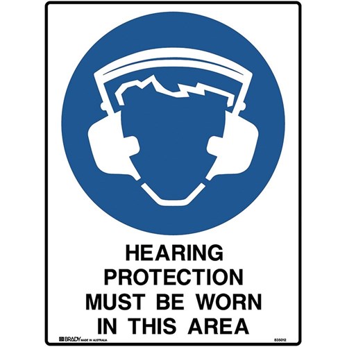 BRADY MANDATORY SIGN Hearing Protection 450x600mm Polypropylene