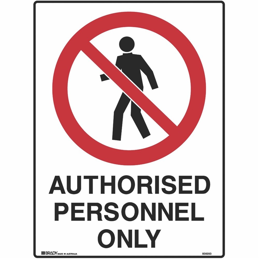 BRADY PROHIBITION SIGN Authorised Persons Only 450x600mm Metal