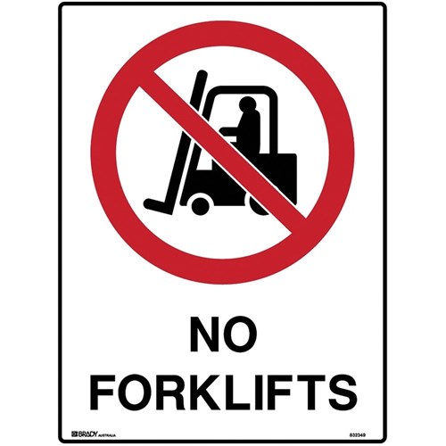 BRADY PROHIBITION SIGN No Forklifts 450x600mm Metal