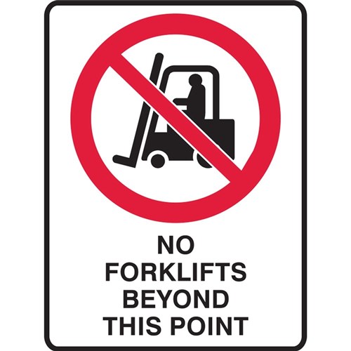 Wording: No Forklifts Beyond This Point. Colour: White, red and black.