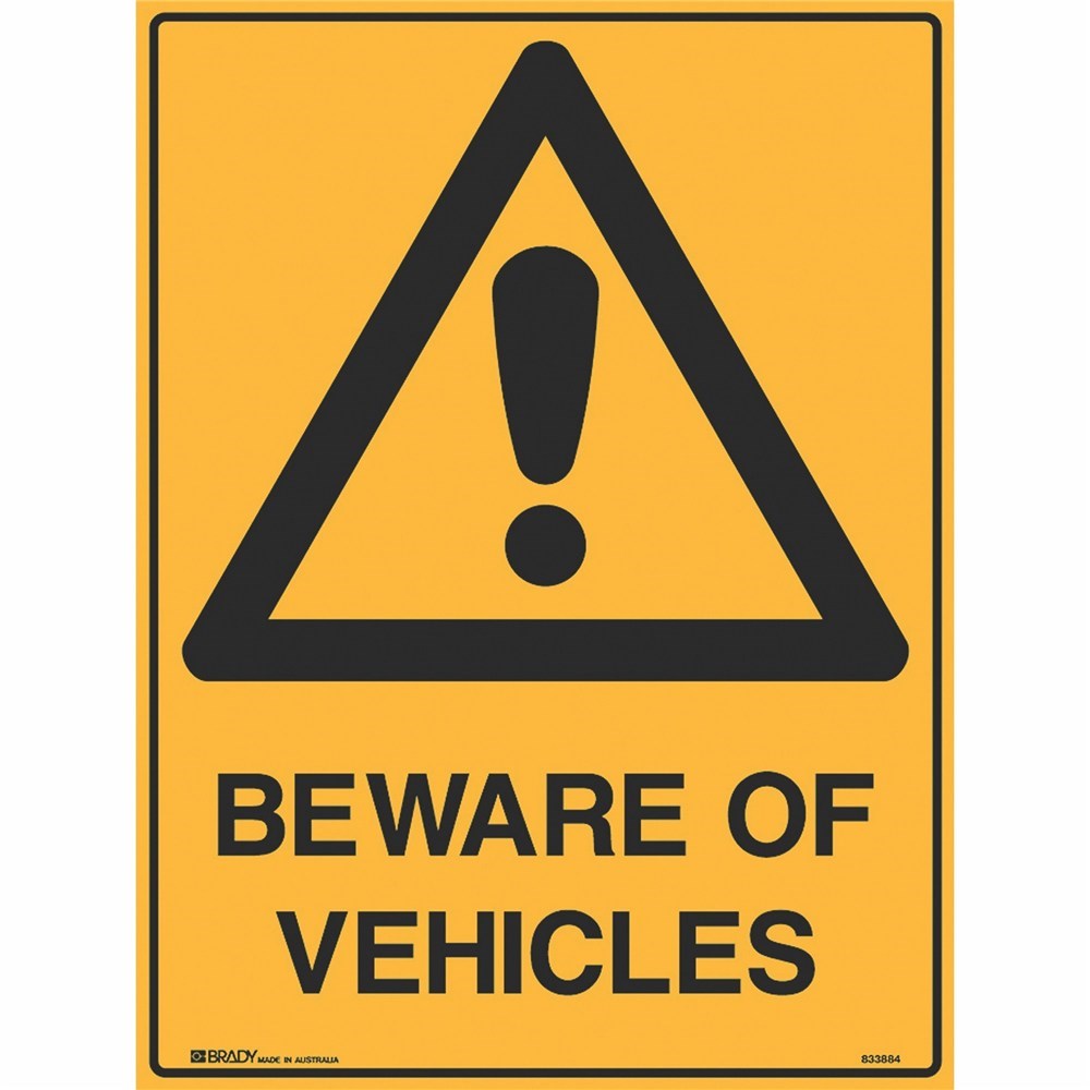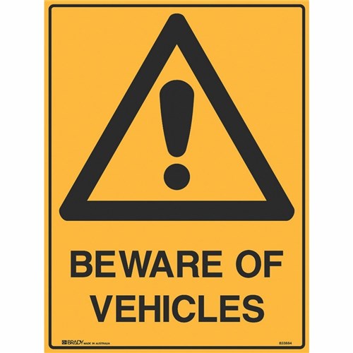 BRADY WARNING SIGN Beware Of Vehicles 600x450 Metal