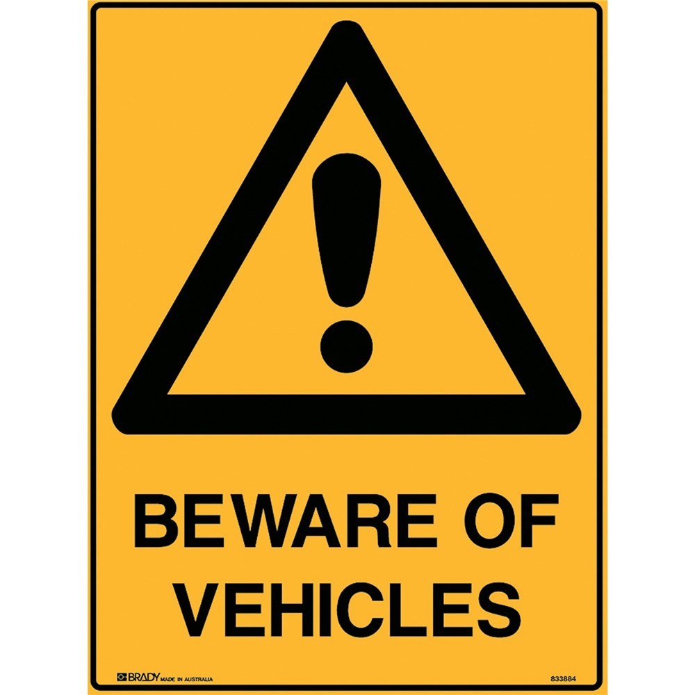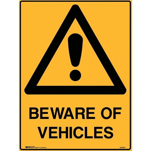 BRADY WARNING SIGN Beware Of Vehicles 600x450mm Polypropylene