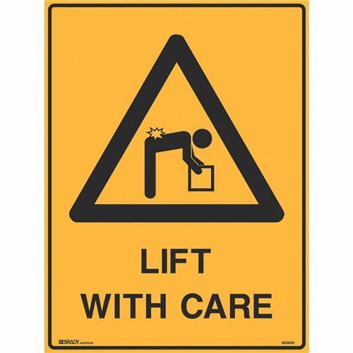 BRADY WARNING SIGN Lift With Care 600x450 Metal