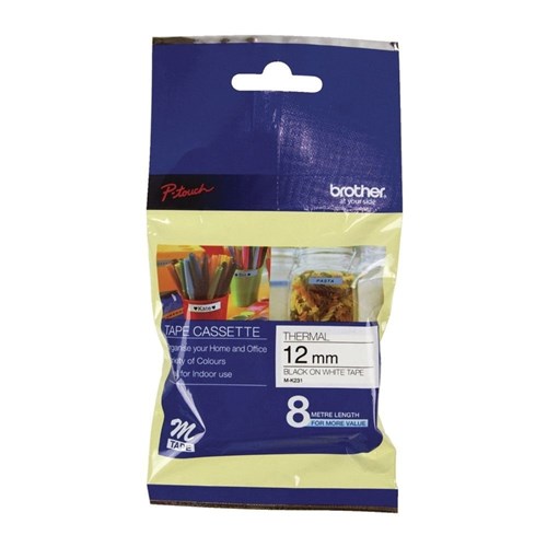 BROTHER M TAPE 12mm BLACK ON WHITE