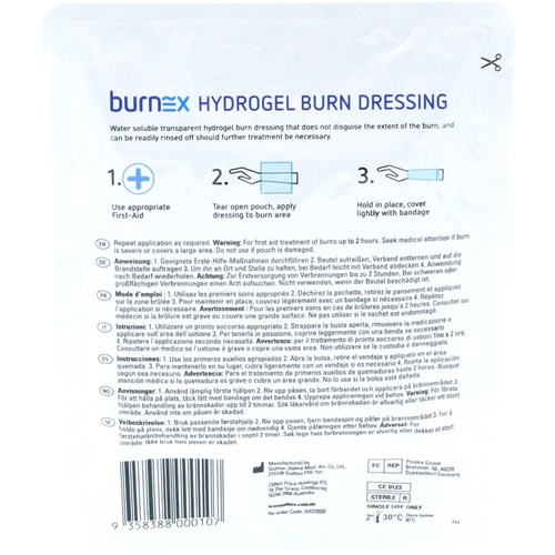 Burnex burn hydrogel is first aid burn treatment and can be used for minor burns, scalds and sunburn.