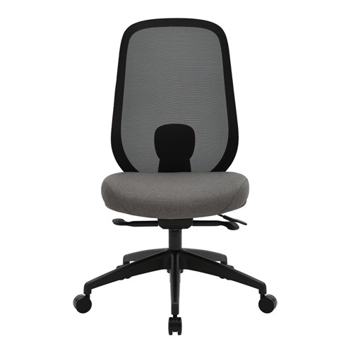 Buro Force High Back Office Chair + Arms Black Frame Grey Fabric Seat Mesh Back